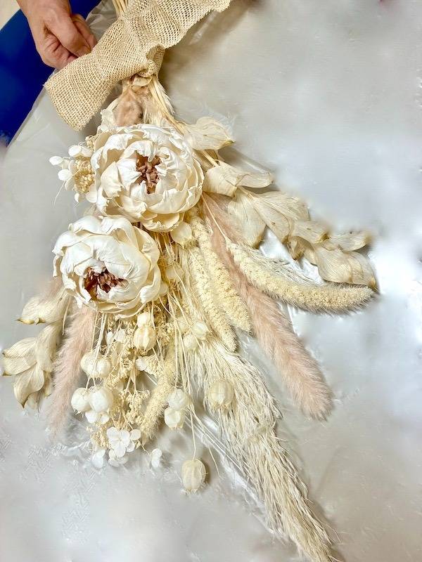 そこで今回のレッスンでは、ブーケ制作後、パンパスグラスブーケをアレンジに作り替えるという、目から鱗の2weyテクニックをご紹介しています!