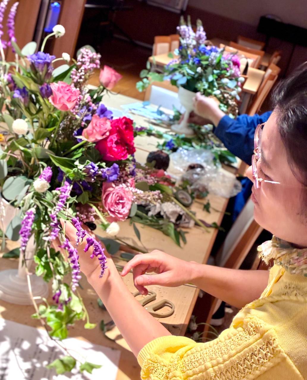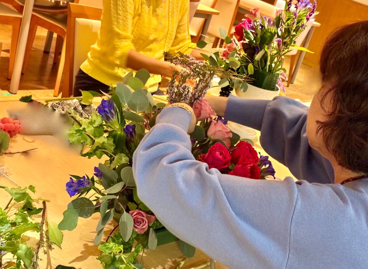 今月は「イングリッシュ・クラシカル」スタイルの『オータムハーベスト』で重厚な秋の豊かさを表現。基本の『ファンアレンジ』も含め、初心者から経験者まで、技術と感性を着実に磨きました。