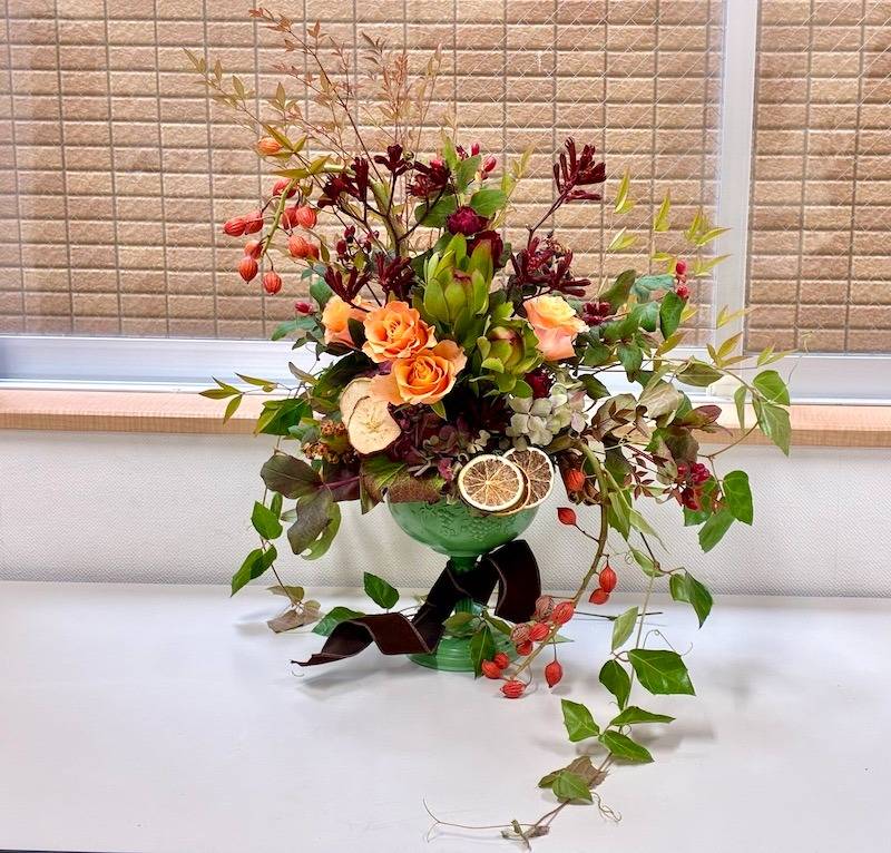 堺市なかもずで深まる秋🍁を五感で楽しむ花の収穫祭ゴブレットアレンジ